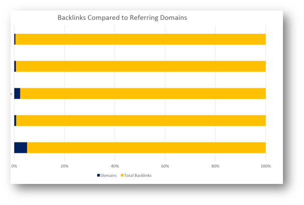 This analysis from Ahrefs compares total backlinks and referring domains.