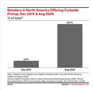 Digital Commerce 360 reported that this led to a growth in US retailers offering curb side pickup, from 6.9% in December 2019 to 43.7% in August 2020.